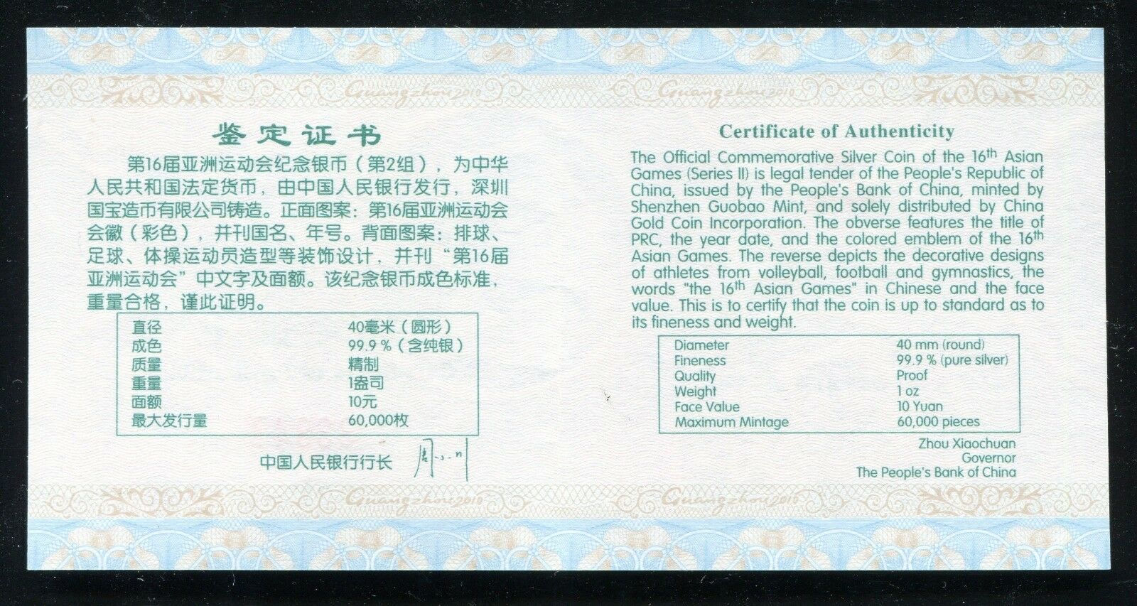 China 2010 1oz Silver Silver Coin - the 16th Asian Games (Series II)Year: 2010