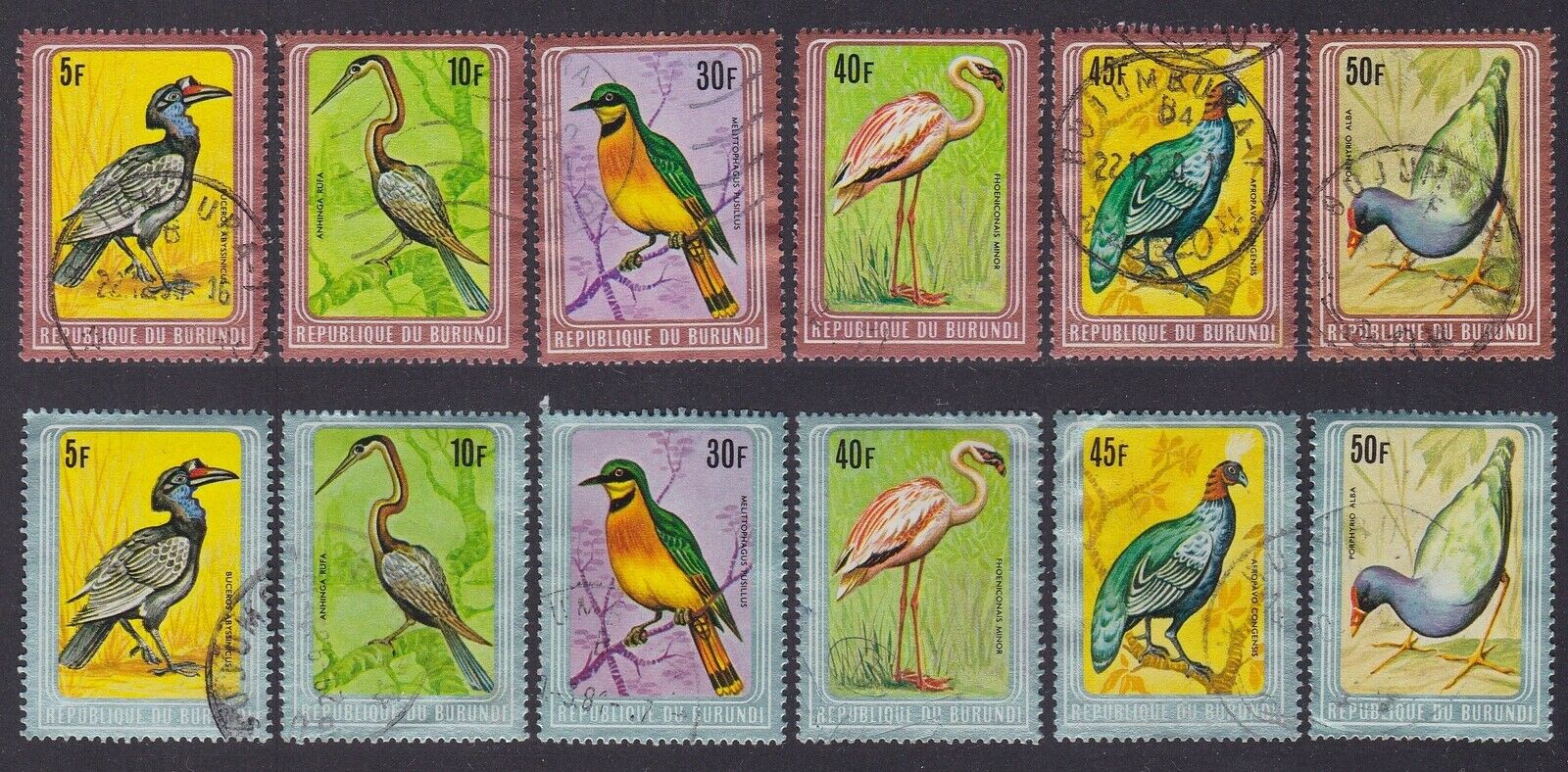 Burundi 1979 Used stamps set BIRDS Metallic Frames Cob 838 A/L - Cat value 1000€
