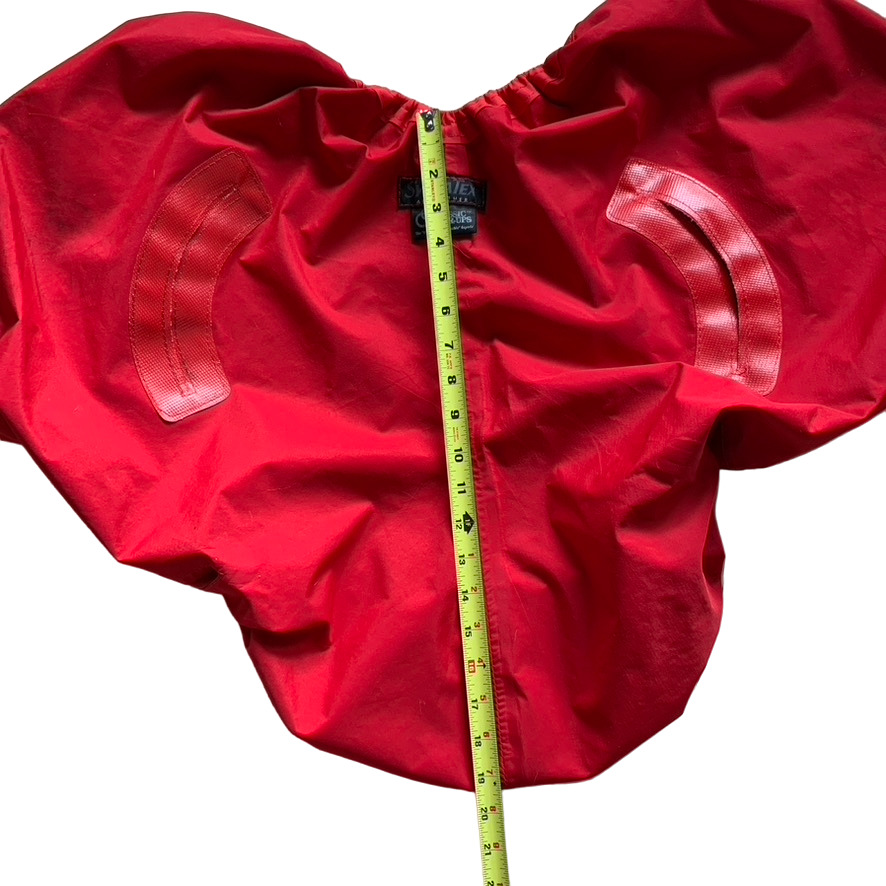 Classic Cover-Ups SympaTex all-weather all-purpose english saddle cover. Has slits on each side for stirrups to feed through so you can ride in the rain & protect your tack. Elastic all the way around.Condition: Used. In great used condition, some rubbing on bottom of left flap. Still vibrant red in color.